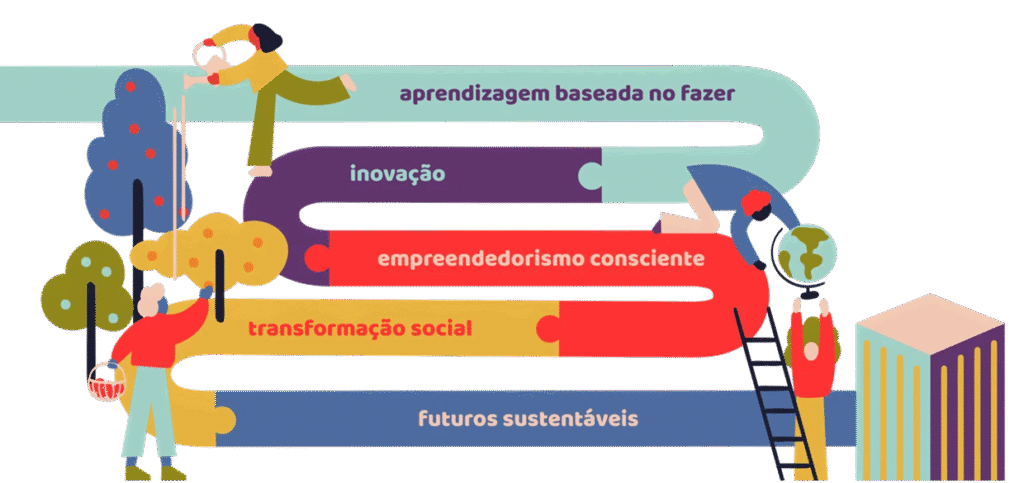Nossa metodologia é intencionalmente direcionada para a resolução de problemas reais, promovendo um impacto positivo na comunidade. Os aprendizes são desafiados a aplicar conceitos teóricos na criação de soluções tangíveis, integrando o pensamento sustentável (como Economia Circular) e a responsabilidade social em cada etapa.